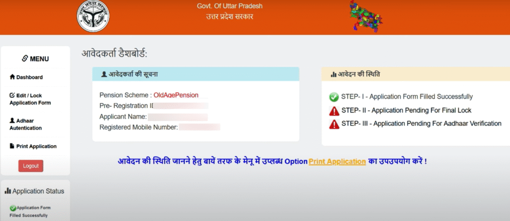 - Log In होने के बाद आपको Print Application पे क्लिक करना होगा आपको स्टेटस देखने को मिल जायेगा I